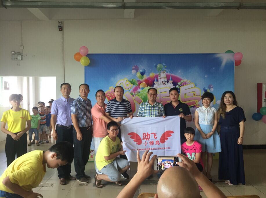 7月17日,“助飞小候鸟”夏令营在南区启航技工学校开营。由中山市江西商会和广东狮子会良都服务队共同合作为外来务工人员子女打造的暑假学习之家,90多位“小候鸟”将在义工、社工以及心理咨询师的辅导下,进行为期一个月的公益夏令营活动,参加小候鸟开班仪式有:魏来金会长,副会长罗云、邹友银、林小虎、冯秀琴。