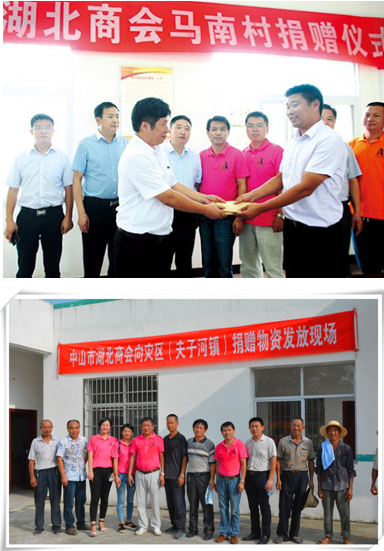 湖北遭受百年一遇的洪灾,中山市湖北商会第一时间在商会内部进行爱心募捐大行动。几天工夫,就筹集善款78884.53元。对湖北重灾区麻城和荆门两地进行定点爱心物资与善款捐赠。
