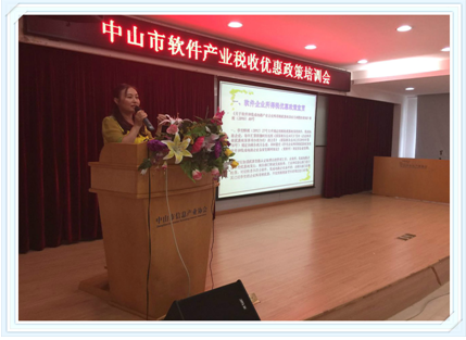 9月26日,由中山市经济和信息化局主办、市信息产业协会承办的“中山市软件产业税收优惠政策培训会”在东区软件园四楼会议中心顺利举行,市经信局电子信息和软件产业服务科梁晓珩科长出席了培训会,80多家企业代表参加培训,会议由协会副秘书长谢瑛主持。
