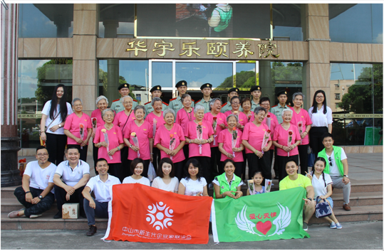 7月13日下午,中山新生代企业家联谊会秘书长孙书昆一行9人来到中山华宇乐颐养院为45位高龄老人庆祝生日,赠送了奶粉、水果鲜花等生日礼物,并送上真挚问候与祝福。来自中山边防的战士们、商会企业家以及小朋友与颐养院老人们共同庆祝生日。