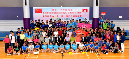 7月15日,为庆祝香港回归祖国二十周年,加强中山、港、澳、台四地的交流,由香港中山石岐联谊会主办,中山海外联谊会、中山市石岐区办事处、中山市石岐区归国华侨联合会、香港中山青年协会、中山市石岐区工商业联合会协办,中山港澳台青年交流促进会承办的“第三届中山、港、澳、台乒乓球友谊邀请赛”在香港黄大仙竹园体育馆火热开赛。