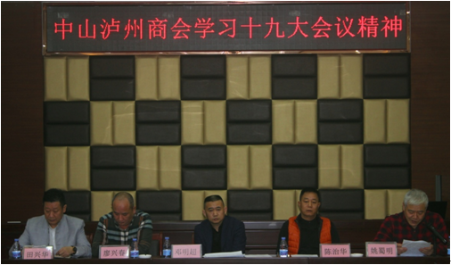 为进一步将党的十九大精神学习好、贯彻好、落实好,中山市泸州商会在前期学习的基础上,于12月15日,在泸商大厦一楼会议室再次举行了19大精神专题学习会议。参加学习的人员有:会长邓明超、执行会长陈治华、监事长廖兴春、理事长田兴华、常务副会长、秘书长、常务副秘书长、片区主任、副主任、副会长、理事及会员代表共计40余人。