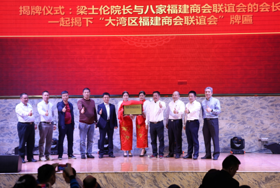 活动中,梁院长与八家商会领导一起揭下“粤港澳大湾区福建商会联谊会”牌匾,严子平创会会长向八家闽籍商会颁发联谊会常务理事商会牌匾,精彩的节目表演及抽奖将活动推向最高潮。