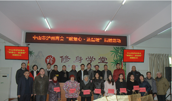 中山市泸州商会及商会党支部,认真贯彻党的19大精神,积极践行习总书记提出的新时期扶贫攻坚的总体要求,2月2日下午,会长邓明超率领一行10多人,到中山市沙溪镇象角村开展慰问贫困家庭、爱心捐赠活动。该镇党委副书记肖浩、人大主席林伟清、副镇长杨炯乐及陈岳荣,社会事务局局长胡桂轩等领导和受助家庭代表参加了捐赠活动。