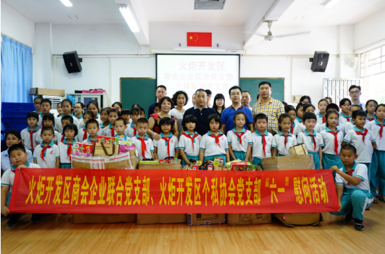 5月25日,在六一儿童节来临之际,火炬开发区商会企业及党支部联合区个私协会党支部前往区第六小学和中蕾幼儿园开展六一慰问活动。区商会副主席(副会长)、区个私协会会长阮锦活等参加了活动。