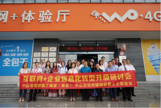 2018年6月27号上午,由胡卫东主席带队,坦洲镇商会联合坦洲镇知联会组织20余家会员企业,30余人赴中国联通中山分公司创客空间举办企业互联网+转型研讨会。