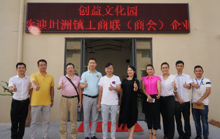 7月12日坦洲镇商会组织10家企业代表共13人前往中山奥凯华泰电子有限公司和中山市坦洲镇创益文化园参观交流。