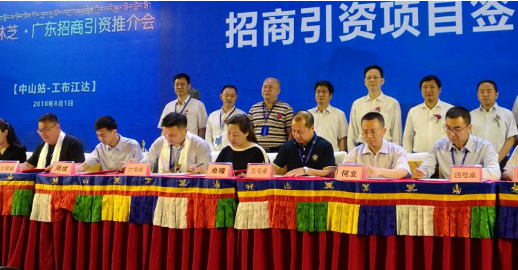 为积极实施“民生援藏、产业援藏、智力援藏、社会援藏、感情援藏”五位一体立体化援藏,促进当地经济发展。8月1日上午,在利和希尔顿酒店四楼宴会厅一厅举行“西藏林芝·广东招商引资推介会(中山站)”。在推介会上,投资、食品、旅游等代表分别与工布江达县签订了31个项目,共计71亿,其中黄圃镇就有《错高乡藏药加工厂项目》、《工布江达县藏猪产业园合作框架协议》、《藏猪购销框架合作协议》、《错久酒店的运营管理合作协议》、《华南地区藏猪冷储基地项目》五个签约项目。