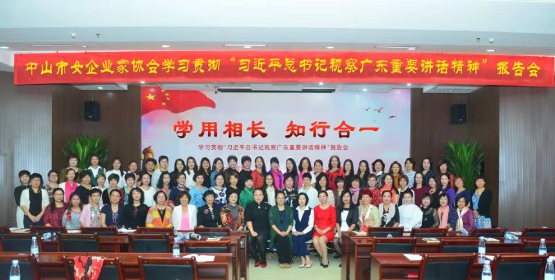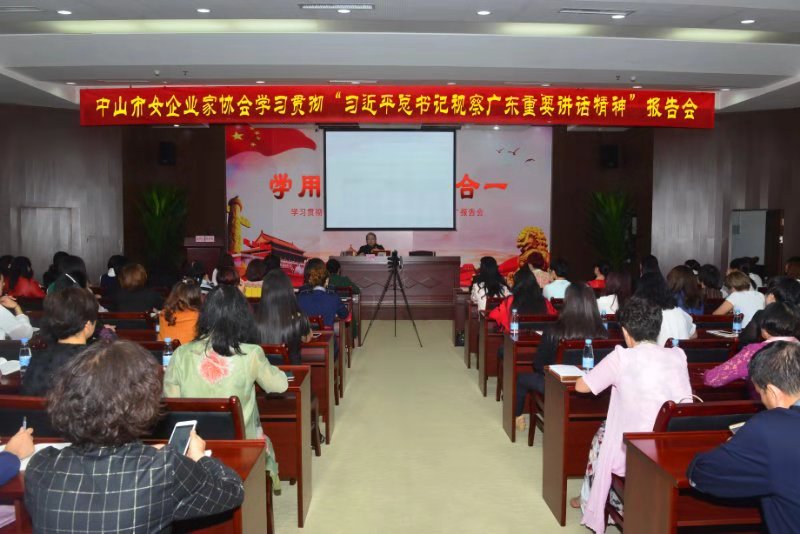 11月22日,中山市女企业家协会隆重举行"学习贯彻习近平总书记视察广东重要讲话精神报告会"专题活动,200位会员参加了学习。活动由第四季度值日副会长陈秀容主持。张晓玲会长作了题为"学用相长,知行合一,掀起学习习近平总书记视察广东重要讲话精神贯彻热潮"的报告。