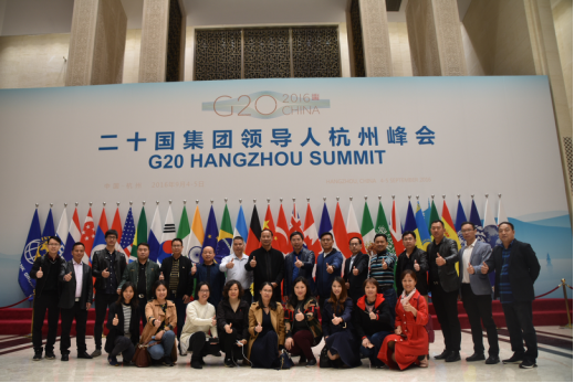 我会考察交流团先后参观了G20峰会的迎宾区、接待厅、主会场、午宴区和空中花园等地,一一领略这以“创新的中国风,浓郁的江南韵,高端的国际范,迎来全世界聚焦”的地方。