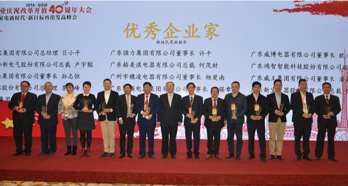 本次大会旨在表彰在改革开放40年来在广东家电业做出重大贡献的企业及代表。并宣布表彰广东改革开放40周年功勋奖、杰出企业家和优秀企业家以及家电行业卓越品牌、先锋企业、创新企业、黑马企业和优秀会员单位。广东格兰仕集团有限公司荣获广东家电行业改革开放40周年卓越品牌,公司创始人、我会名誉会长梁庆德荣获广东家电行业改革开放40周年功勋奖,公司总裁梁昭贤当选广东家电行业改革开放40周年杰出企业家。