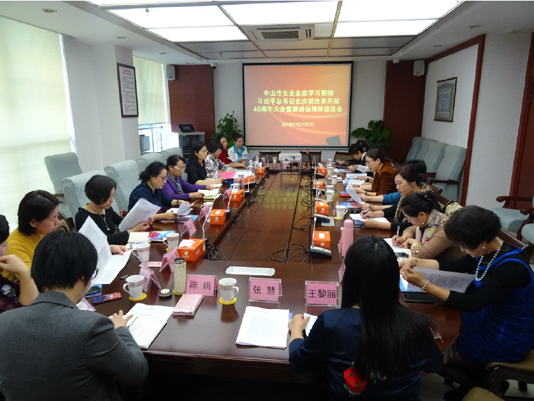 12月21日下午,中山市女企业家协会召开座谈会,传达学习贯彻习近平总书记在庆祝改革开放40周年大会上重要讲话精神,20位正副会长参加了学习。张晓玲会长作了专题发言。市妇联主席左海燕、副主席高峥出席座谈会并做了重要讲话。