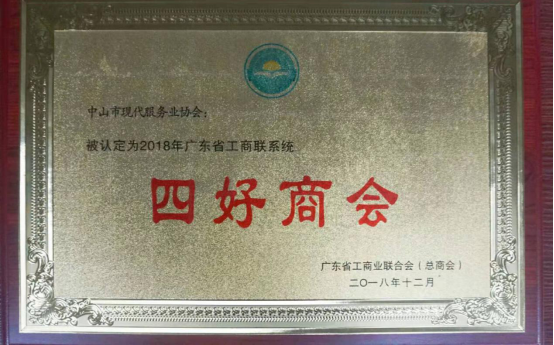 据悉,2018年全省共有96家各级工商联商会被认定为广东省工商联系统的“四好”商会,中山获此称号的有五家商协会,分别是中山市现代服务业协会、中山市信息产业协会、中山市古镇镇商会、中山市民众镇商会、中山市湖北商会。(市现代服务业协会)