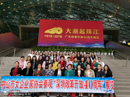 4月19日,中山市女企业家协会会长张晓玲带领女企业家一行45人,前往深圳改革开放展览馆,参观“大潮起珠江——广东改革开放40周年展览”,感受改革开放40年来中国的沧桑巨变。