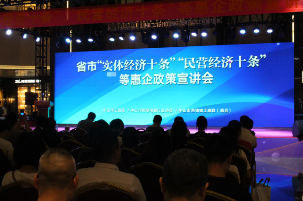 为了让古镇各企业了解最新的政策信息,帮助企业加强政策学习和运用,降低企业运营成本,增强竞争力。5月24日下午,中山市工信局联合中山市照明电器行业协会、古镇镇工商联(商会)在古镇利和灯博中心举办省市“实体经济十条”、“民营经济十条”等惠企政策宣讲会。中山市工信局技术改造投资科副科长雷春华,古镇镇经信局副局长何兆钿,中山市照明电器行业协会副会长兼秘书长、古镇镇工商联(商会)副主席兼秘书长区德成以及130多名企业代表出席本次宣讲会。
