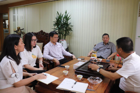 6月21日下午,板芙镇商会会长、洋紫荆油墨(中山)有限公司总经理邝国照和常务副会长、中山保利达毛纺织制衣有限公司董事、总经理翟志明率秘书处人员,前往我会副会长单位——中山市冠达家具制造有限公司进行走访交流。