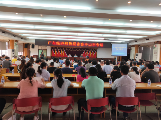 7月9日下午,2019年广东经济形势报告会中山市专场走进民众镇工商联(商会)。广东经济发展形势宣讲专家、中山市经济研究院院长、市发展改革研究会会长、经济学博士梁士伦担任主讲人,市工商联(总商会)党组成员、副主席吴国森,民众镇党委委员、副镇长李健华,我会有关领导、会员企业代表、镇青年企业家协会代表、沙仔漂染洗水联会的代表以及规模以上企业代表等共180人参加会议。