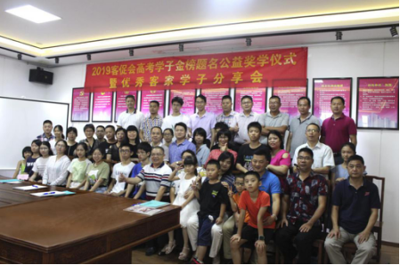 8月18日上午,客家经济文化促进会举办“2019客促会高考学子金榜题名公益奖学仪式暨优秀客家学子分享会”,邀请了2019高考重本线以上的优秀中山客家学子进行奖励和经验分享。参加本次分享会的有执行会长兼秘书长饶宇航、执行会长曾景华、顾问魏晋、卢昭莹、副会长李敏斌、谢权忠、曾文绅等及家长、学生五十多人。