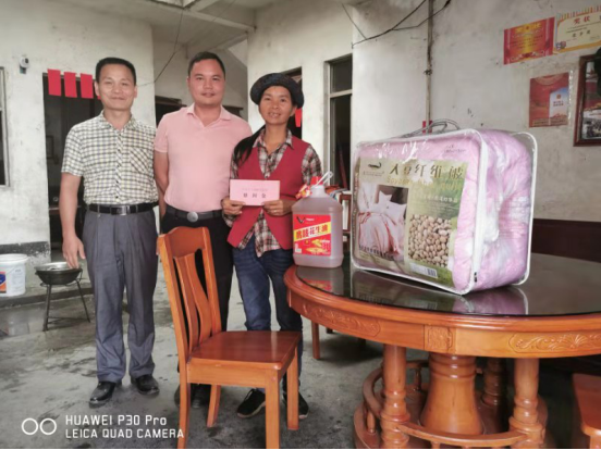 9月11日,支部书记颜台璐同志在慰问困难家庭植培光家时,鼓励其女儿,努力读书,通过教育改变家庭的状况。同时详细了解困难户的身体状况、生活条件、当前存在的困难以及对未来的打算。针对他们存在的困难出谋划策,及时解决问题,并送上生活物资,给他们带去了党的关心关怀和问候。