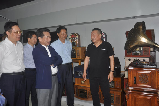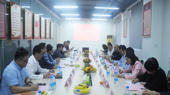 图为何灿成副主席(左三)等听取邝伟雄委员(右一)介绍公司产品