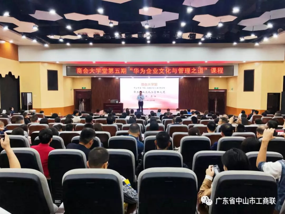 为营造企业学习氛围,提升企业的竞争力,同时节省企业培训成本,由中山市委统战部、中山市工商联(总商会)作指导单位,18家商协会联合主办,15家商协会作为支持单位,中山商会大学堂第五期——“华为企业文化与管理之道”,12月18日在中山职业技术学院讲学厅举行。中山市工商联党组成员、副主席颜台璐、中山市委统战部经济科科长何振锋,以及商协会代表330多人参加学习。