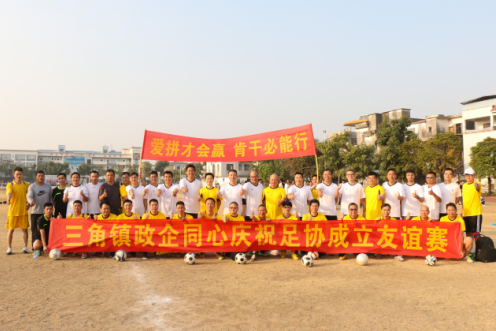 12月12日下午,为了进一步推动三角镇足球事业的发展,增进政企之间沟通互动。镇工商联(商会)组织企业家在沙栏中学进行了一场政企足球友谊赛。市足球协会副会长吴家杰、陈家豪、镇党委书记、镇长李宗、镇工商联(商会)常务副主席(常务副会长)黄奋强、卞水祥等镇足球协会成员参加了活动。