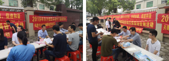 为深入贯彻落实十九大提出的“完善政府、工会、企业共同参与的协商协调机制,构建和谐劳动关系”精神,5月21日上午,东升商会与东升镇人社分局以及东升镇工会在镇人社分局门口摆摊设点举行2019年构建和谐劳动关系现场咨询活动。通过现场面对面的解答和派发劳动保障手册等宣传材料的方式,让来往的市民朋友对维护自身在劳动关系中的合法权益有了新的认识。