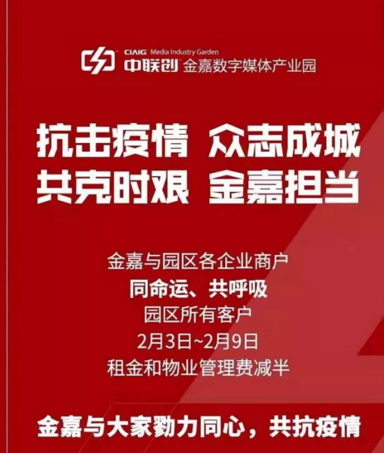 市互联网应用协会协会会长单位中联创金嘉数字媒体产业园(简称金嘉创新港)对园区全体客户给予减租政策支持