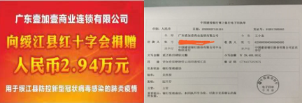 市工商联副主席单位广东壹加壹商业连锁公司向云南昭通绥江县捐赠物资29400元。