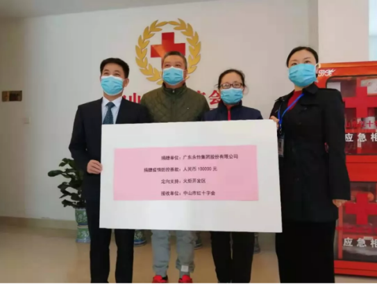 广东永怡集团股份有限公司向中山市红十字会捐款10万元,用于火炬开发区抗击新冠肺炎疫情防控工作