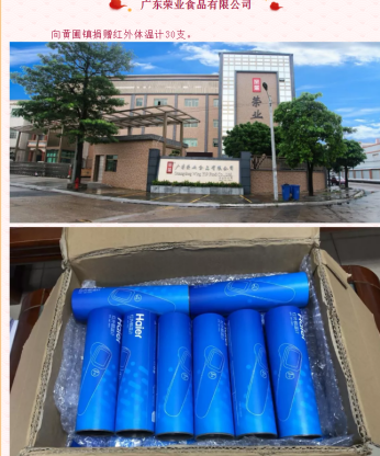 黄圃镇工商联(商会)会长单位广东荣业食品有限公司向黄圃镇捐赠红外体温计30支(价值1800元)
