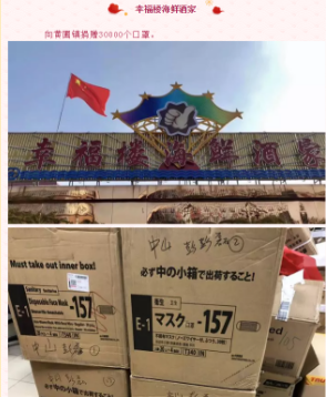 黄圃镇工商联(商会)会员单位幸福楼海鲜酒家向黄圃镇捐赠30000个口罩(价值7万元)