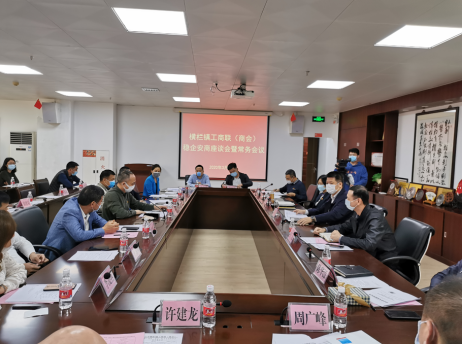 3月12日下午,横栏镇工商联(商会)稳企安商座谈会暨常务会议在镇商会会议室召开。镇党委书记劳国南,镇党委副书记、镇长候选人巫广庭,镇人大主席候选人冯结红,镇党委委员、副镇长陈华添,镇党委委员赵国明等镇领导,镇工商联(商会)主席何云峰,常务副主席冯俊、黄学颖、陈爱华、吴耀棠,常务副会长曾顺庆、许建龙、李凌燕、周广峰、马文波、梁申华,以及镇组织人事办、人社分局、经信局、社会事务局、税务分局等部门负责人出席了会议。会议由赵国明委员主持。