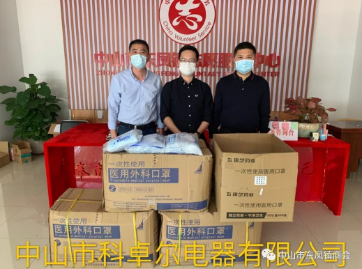 中山市科卓尔电器有限公司捐赠医用外科口罩10000多个