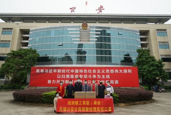自新型冠状病毒感染的肺炎疫情发生以来,全市公安机关干警,全力以赴,扎实落实防风险、护安全、战疫情、保稳定各项措施,驻扎在社区街道、车站市场、高速路口。可以说哪里可能存在疫情传播风险,哪里就有公安民警的身影。为此,4月1日下午,在坦洲镇统侨办主任黄当葵、坦洲镇工商联(商会)主席(会长)赵志枚的带领下,我会轮值主席(会长)张鑫、副主席(副会长)李君杰、陈巧萍等一行8人来到中山市公安局坦洲分局,向公安机关捐赠了8000个一次性医用外科口罩,助力公安民警战“疫”,同时为投身抗疫防控阻击战的公安民警送上问候和祝福。