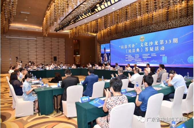 7月31日下午,由广东省法学会主办、中山市委政法委等单位承办、市民营企业服务中心协办的第33期“以法兴企”文化沙龙——《民法典》答疑活动在我市举行。省市法学法律专家与我市60余位企业家面对面交流,解答企业关注的《民法典》相关热点问题,并有针对性提出防范法律风险的意见建议。中国警察协会副会长、中国法学会常务理事、广东省法学会会长梁伟发,市领导唐颖、郑泽晖、林少棠,市工商联党组成员、副主席颜台璐出席活动。