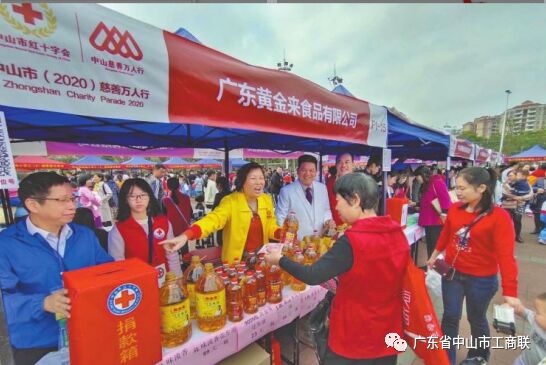 杨柏和的公司已连续10年参加中山市“慈善万人行”元旦嘉年华暨百家企业义卖活动,把义卖所得全部捐赠给慈善机构。图为2020年元旦该公司义卖现场。