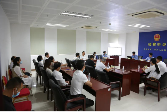 企业家代表首先参观服务保障民营经济发展案例展,走访12309检察服务中心、未检办案区,充分了解中山二区检服务保障民营经济发展的具体情况以及检察各项业务开展情况。人大代表企业家现场参与一宗故意伤害案件羁押必要性审查的公开听证,并发表意见,其他民企代表现场观摩办案,进一步了解检察职能,增进司法认同。