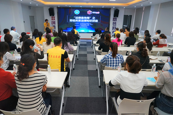 为响应2021年中山市学雷锋志愿服务月活动,落实“八五”普法规划,3月18日,由中山市民营企业服务中心、坦洲镇工商联(商会)主办,市办公耗材行业协会、广东融聚律师事务所承办的《民法典》之劳动关系讲座在坦洲镇坦南创客园举办。市工商联四级调研员陈丹丹、坦洲镇工商联主席(会长)赵志枚、市民营企业服务中心全体、坦洲镇工商联(商会)及市办公耗材行业协会企业代表共约60人参加。