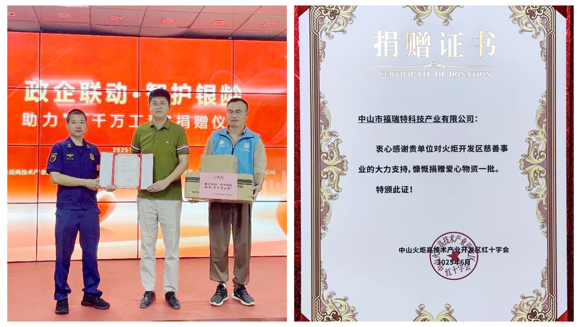 中山火炬高技术产业开发区消防救援大队李参谋长见证了这一暖心的捐赠时刻。钟总将承载着安全承诺的设备交到政社局代表李远峰同志手中。李远峰同志对福瑞特科技的慷慨善举表达了由衷的感谢,现场颁发了“爱心捐赠证书”,彰显民营企业的社会担当。