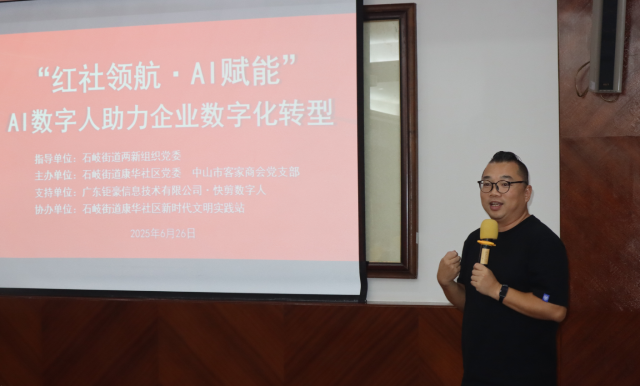 近日,市客家商会党支部依托“商村共建”机制,积极探索服务社区及会员企业的新渠道与新形式,联合石岐街道康华社区党委,成功举办“AI数字人助力企业数字化转型”专题培训活动。商会会员单位、康华社区辖区企业负责人、数字化部门主管及市场营销骨干等60余人参加培训,现场反响热烈,互动踊跃。