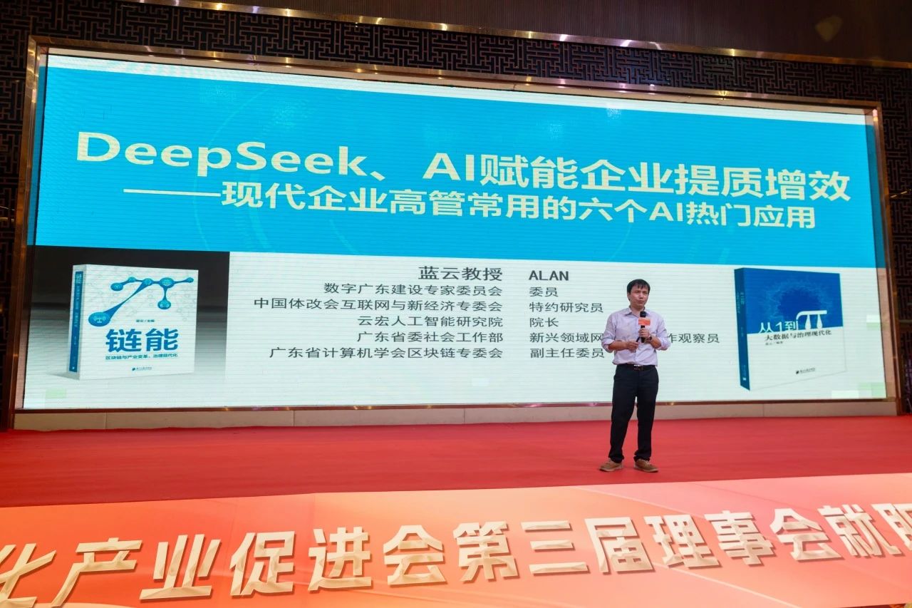 晚会特邀广东省“AI金牌讲师”、云宏人工智能研究院院长蓝云作专题分享,解析AI技术在企业提质增效中的实践应用。