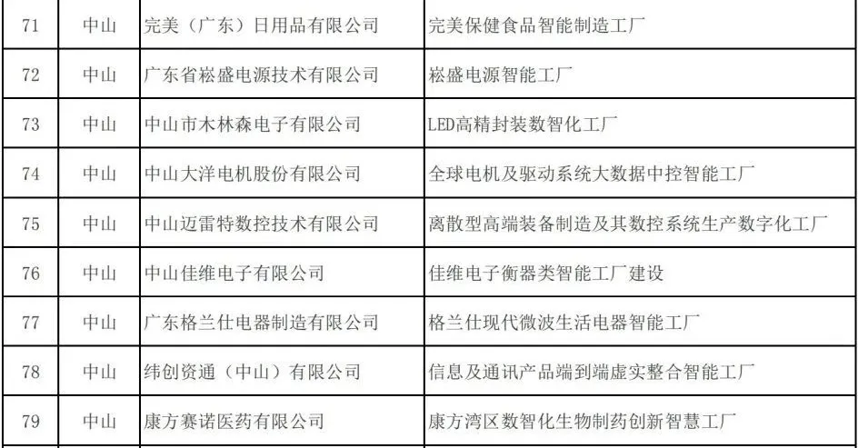 近日,广东省工业和信息化厅公示2025年先进级智能工厂名单,全省共有来自13个地市的90家企业上榜。其中,中山有9家企业入选,行业领域涉及食品饮料、电子信息、家居建材、汽车制造、生物医药等。