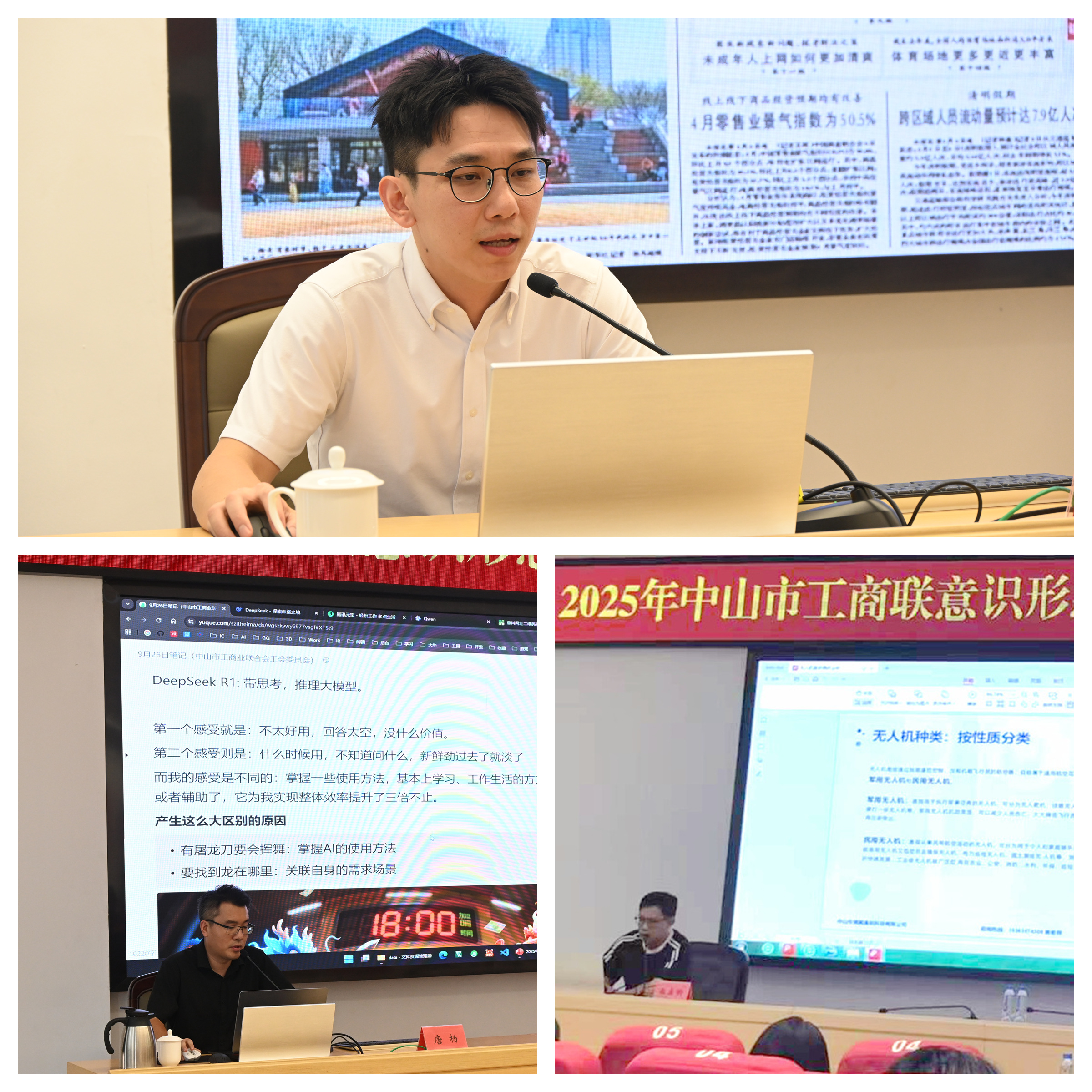 培训班邀请业内经验丰富的老师授课,提升商协会宣传队伍素质能力。市委党校郑劲超老师讲解“意识形态工作主动权”,阐释核心要义、风险挑战与实践路径,增强学员风险防范能力。市工人文化宫唐杨老师以“Deepseek人工智能实战应用”为题,现场演示AI人工智能技术在信息采集、内容生产及数据分析等工作中的应用。全球鹰中山分校张嘉明老师聚焦“低空经济发展与无人机合规飞行”,解读概念内涵、发展趋势、应用场景、操作规范及人才需求,拓宽学员宣传思路。