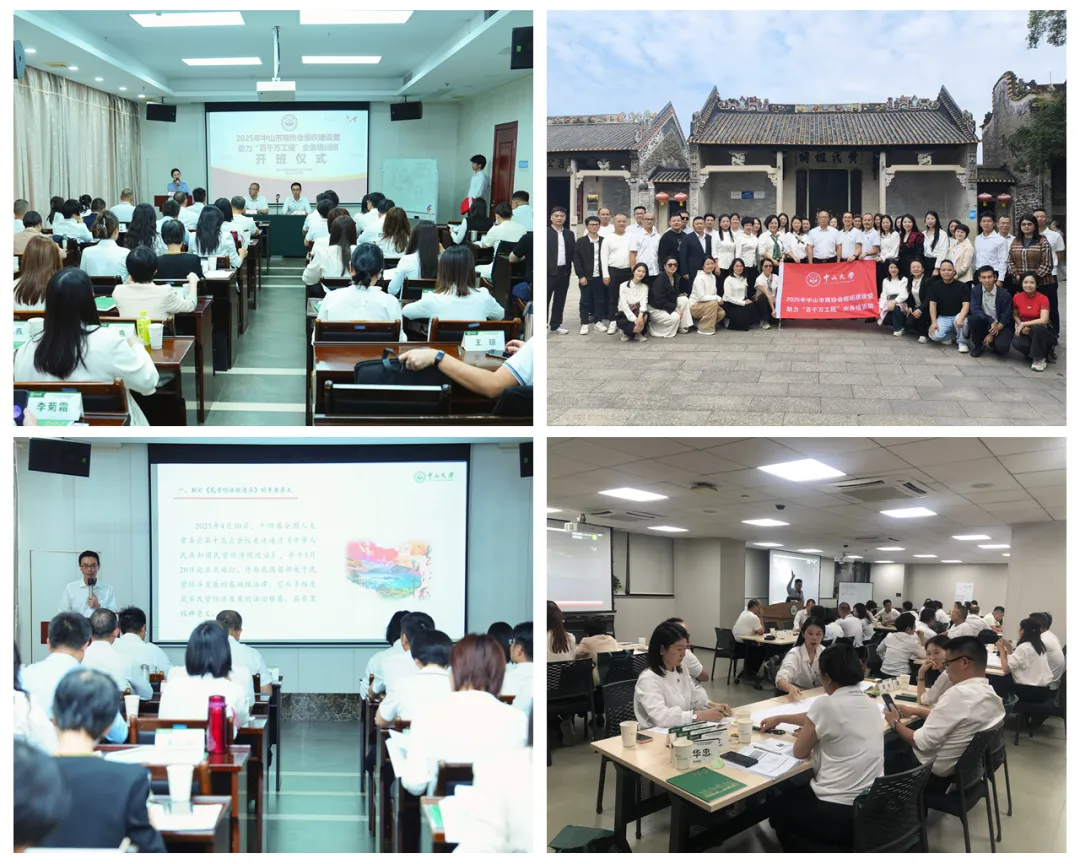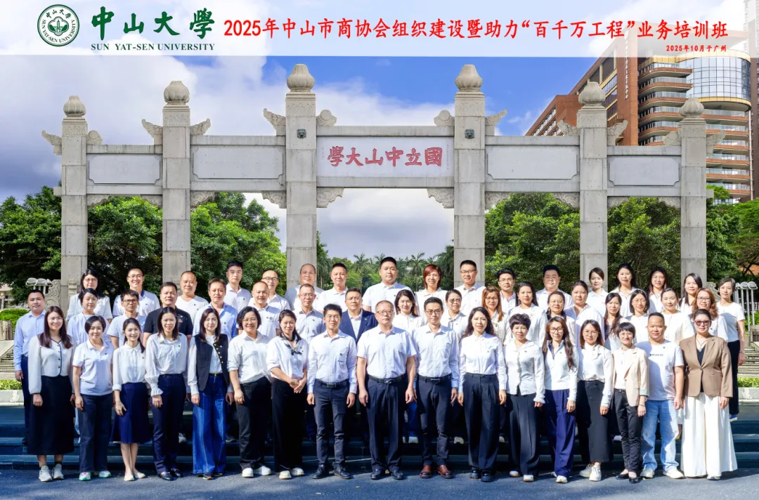 为全面提升商协会组织建设水平,凝聚民营企业力量深度参与“百千万工程”,2025年10月27-28日,中山市委统战部、市工商联联合举办中山市商协会组织建设暨助力“百千万工程”业务培训班。市工商联各团体会员商协会会长、秘书长代表赴中山大学参加培训。