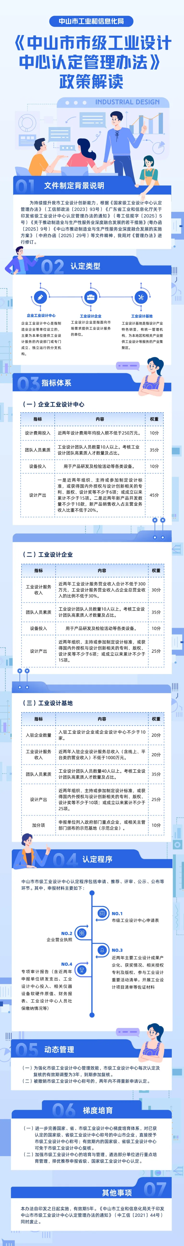 (五)公布。对公示期满无异议或异议不成立的拟认定对象,由市工业和信息化局授予“中山市市级工业设计中心”牌匾,并发文公布。