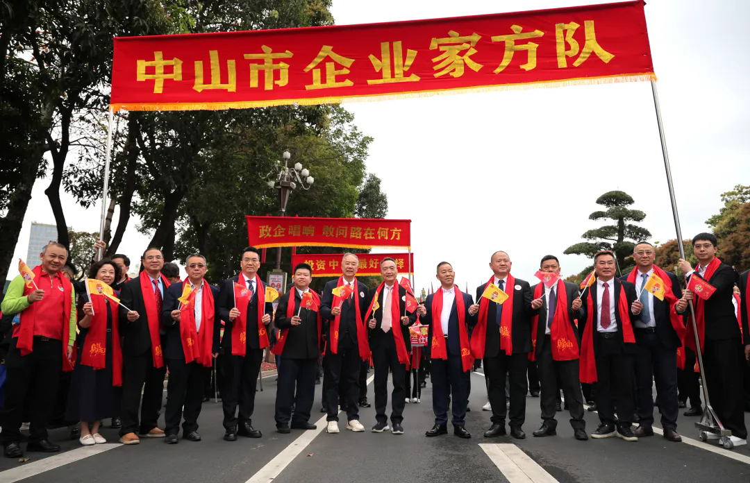在此次慈善万人行巡游中,企业家方队高举的“政企唱响,敢问路在何方;投资中山,最佳选择”的横幅铿锵有力,既体现了慈善万人行“人道、博爱、奉献”的公益初心,又向全社会传递出中山政企同心、共谋发展的坚定信念。伴随着整齐的步伐,方队成员齐声高呼“投资中山,努力奋斗!”,嘹亮的口号响彻巡游路线,每一次呐喊都饱含着企业家们扎根中山、建设中山的赤诚之心,彰显着他们抢抓机遇、实干兴企的昂扬斗志。