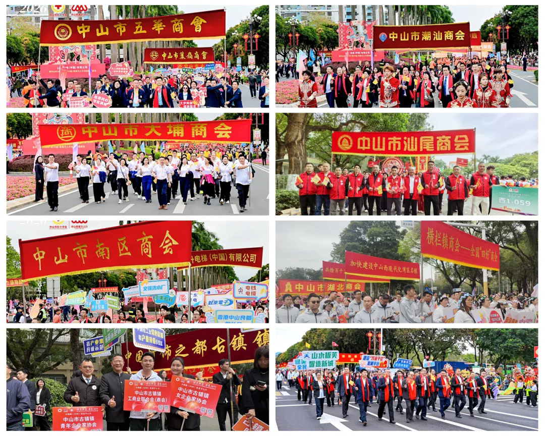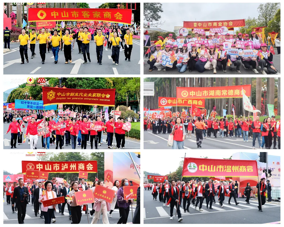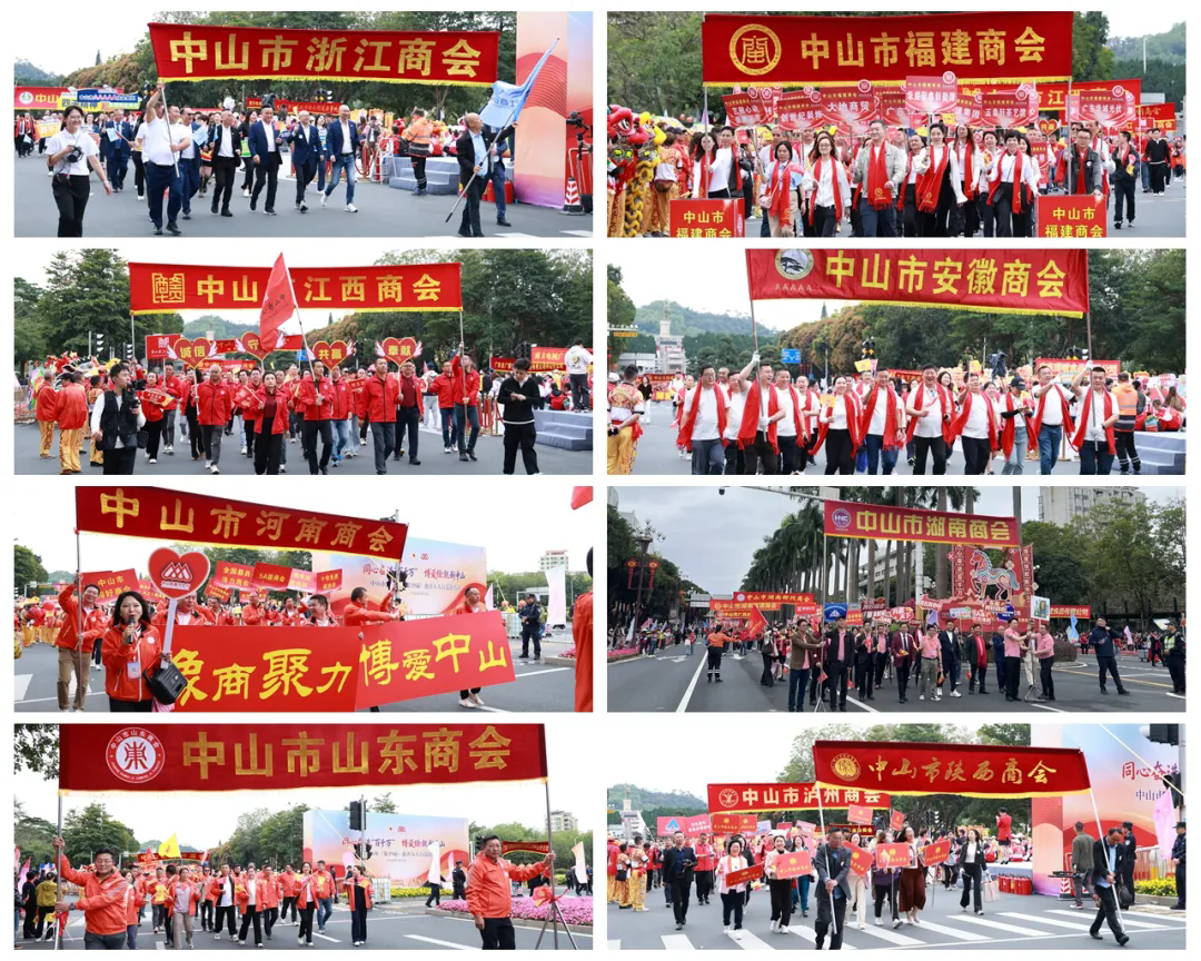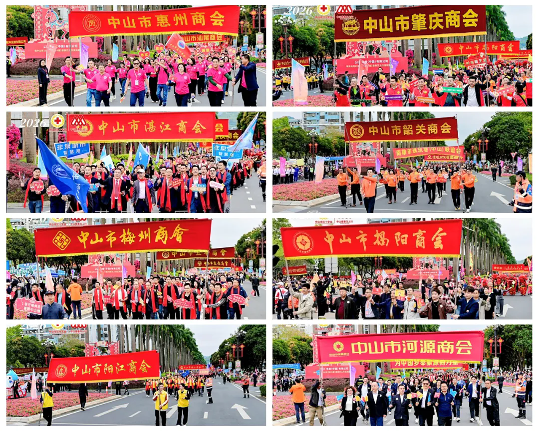 活动现场锣鼓喧天、龙腾狮跃,260余支巡游队伍、1万余名参与者精神抖擞、步伐整齐,共同投身这场延续39载的慈善盛事。市工商联系统各商协会坚决响应号召,有46个商协会单独组成方队,共1300余名代表整齐列队、浩荡前行,成为巡游队伍中彰显民营经济力量的重要亮点。队伍涵盖市福建商会、市湖南商会、市安徽商会、市河南商会、市浙江商会、市江西商会、市广西商会、市湖北商会、市陕西商会、市山东商会、市海南商会、市惠州商会、市湛江商会、市潮汕商会、市肇庆商会、市韶关商会、市河源商会、市梅州商会、市汕尾商会、市阳江商会、市揭阳商会、市温州商会、市赣州商会、市新余商会、市于都商会、市郴州商会、市常德商会、市泸州商会、市宜昌商会、市襄阳商会、市随州商会、市客家商会、市五华商会、市蕉岭商会、市大埔商会、市雷州商会、市新企联、市女企业家协会、市商业协会、市办公家具行业协会、市茶叶商会、市企业营销协会、市广告协会、市律师协会、市酒类行业协会、市建筑业协会等。他们同心同德、步伐坚定,汇聚成支持中山慈善博爱事业、推动“百千万工程”落地实施的强大民营力量。