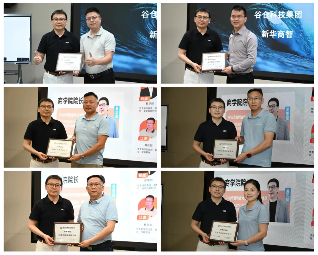 活动现场举行颁牌授证仪式,彰显责任担当,夯实平台基础。顾问聘牌环节:吴忠斌院长为“谷仓科技集团”和“新华商智EMBA”项目授牌,搭建外部智慧桥梁,体现开放办学。责任分工授牌:各部门负责人获职务聘牌,钱威任教学部主任、江波任教务部主任、李晓任宣传部主任、庞高群任教研部主任、张松任院长助理,明确职责,承担运营责任。学员录取证书颁发:首批学员获证书,学习征程开启,寄托共赴发展新程的期望。