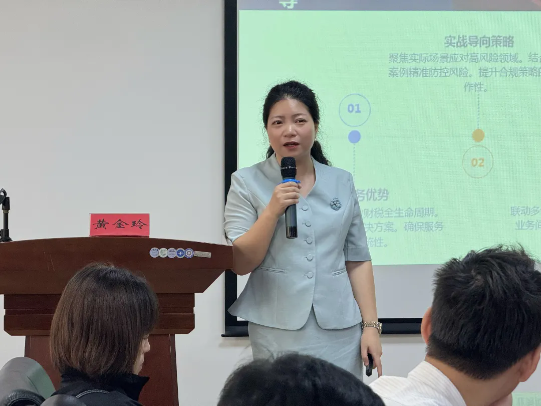 本次活动特邀商会理事单位、中山市正业会计服务有限公司总经理黄金玲担任主讲嘉宾。分享会上,黄金玲女士结合企业经营实际与行业痛点,围绕企业用工涉税风险、股权合理布局、税务稽查协办、研发费用加计扣除、不动产合规规划五大核心模块展开务实、细致的讲解。讲解过程中,讲师深度结合2025年多起典型真实税务案例,系统梳理企业日常经营中高频出现的税务违规情形,精准拆解各类涉税隐患,并手把手指导企业掌握风险自查方法,助力企业精准识别、有效规避潜在税务问题。